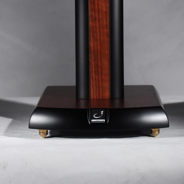 听音之前,先把脚架下面的四颗铜脚钉调到平衡,并拧紧固定片,保证脚架放置平衡,不让脚架有任何摆动,然后把音箱放在脚架上试听。