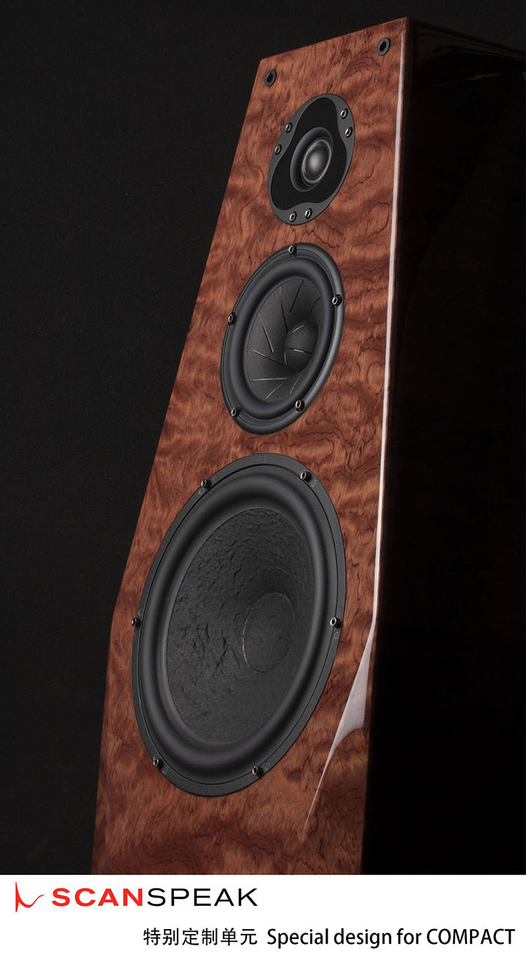 高音单元:选择了国际音响发烧界享有盛誉的丹麦HiEnd级发烧单元ScanSpeak的Illuminator系列D3004/662000高音,它是ScanSpeak的顶级高音单元。◆ 它宽折环和织物球顶振膜确保了高于30KHz的平坦频率响应,并具有优异的离轴响应。◆采用SD-2驱动技术能控制磁路系统中的感生电流和平滑阻抗曲线,在降低失真的同时在磁隙中点周围提供对称的电感。◆AirCirc motor技术将6个钕铁硼按星型排列成磁极,产生了一个让空气在高音后腔能自由流动的开放的磁路结构,它使得高音更加平滑和自然,消除了对传统磁路有害的反射和谐振。