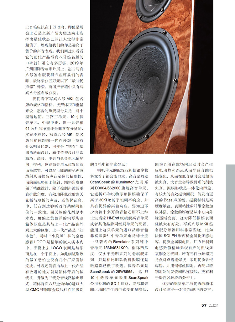 “虽然整体灵敏度不高,但写真八号推动起来不会感觉很吃力,因为我感觉它的箱体设计很好,中高频比较开扬,而低频量感也不少,倒相管的计算比较精准,箱体容积合适,所以对于录音中的不少鼓点之类的低频表现的弹性十足,节奏强烈,下潜深,比较过瘾。……或者不一定能一见钟情,但慢慢品味,或许你会爱上它。”?